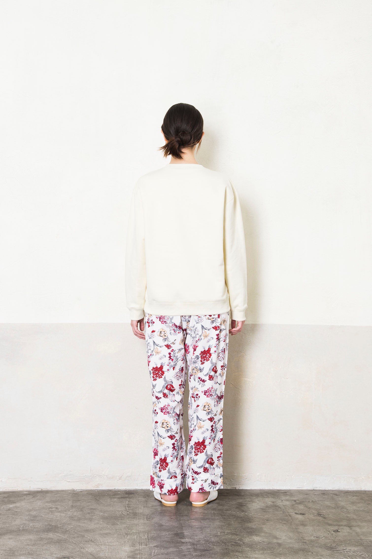 ・hilal ayのフラワープリントパンツでリラックスコーデ。