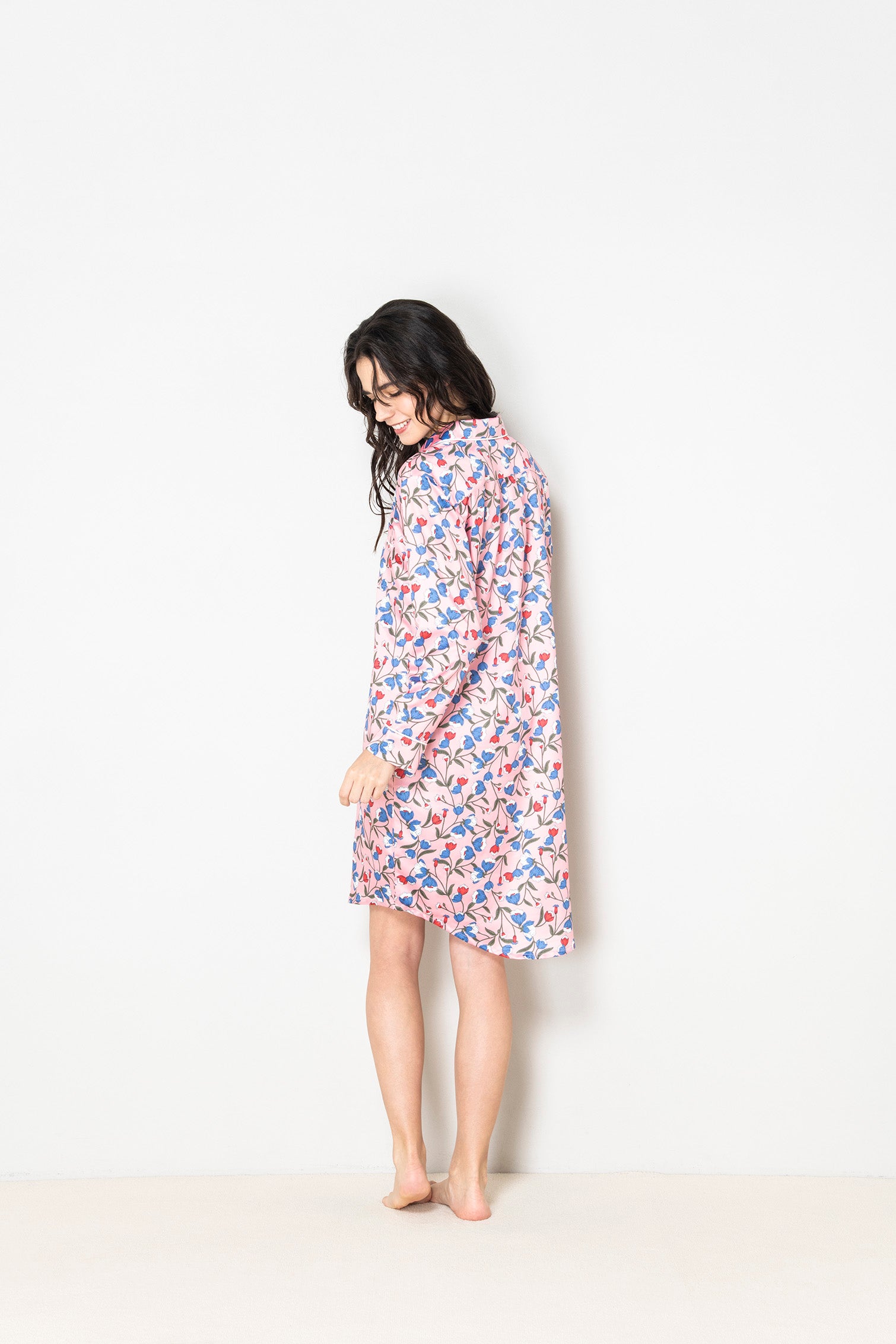 ヒララ一番人気のシルクタッチシリーズから2022AW新作柄が登場。毎シーズン人気のピンクベースにブルーの花柄が愛らしいプリントです。