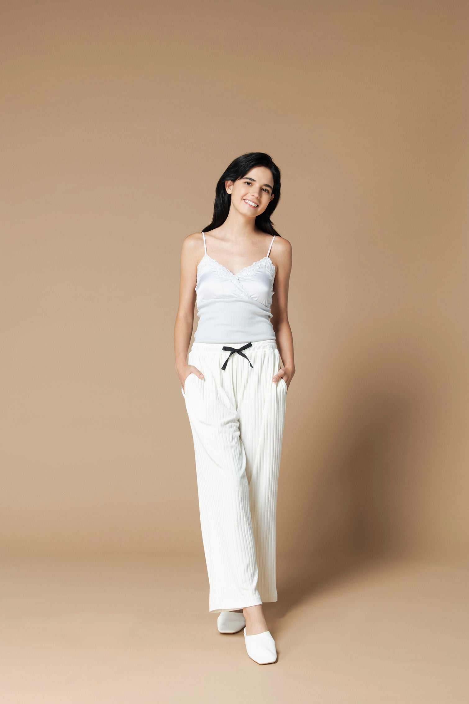 ・パジャマのトップスやワンピースを合わせて、シンプルながらにhilal ayのかわいい花柄を楽しむコーディネート。