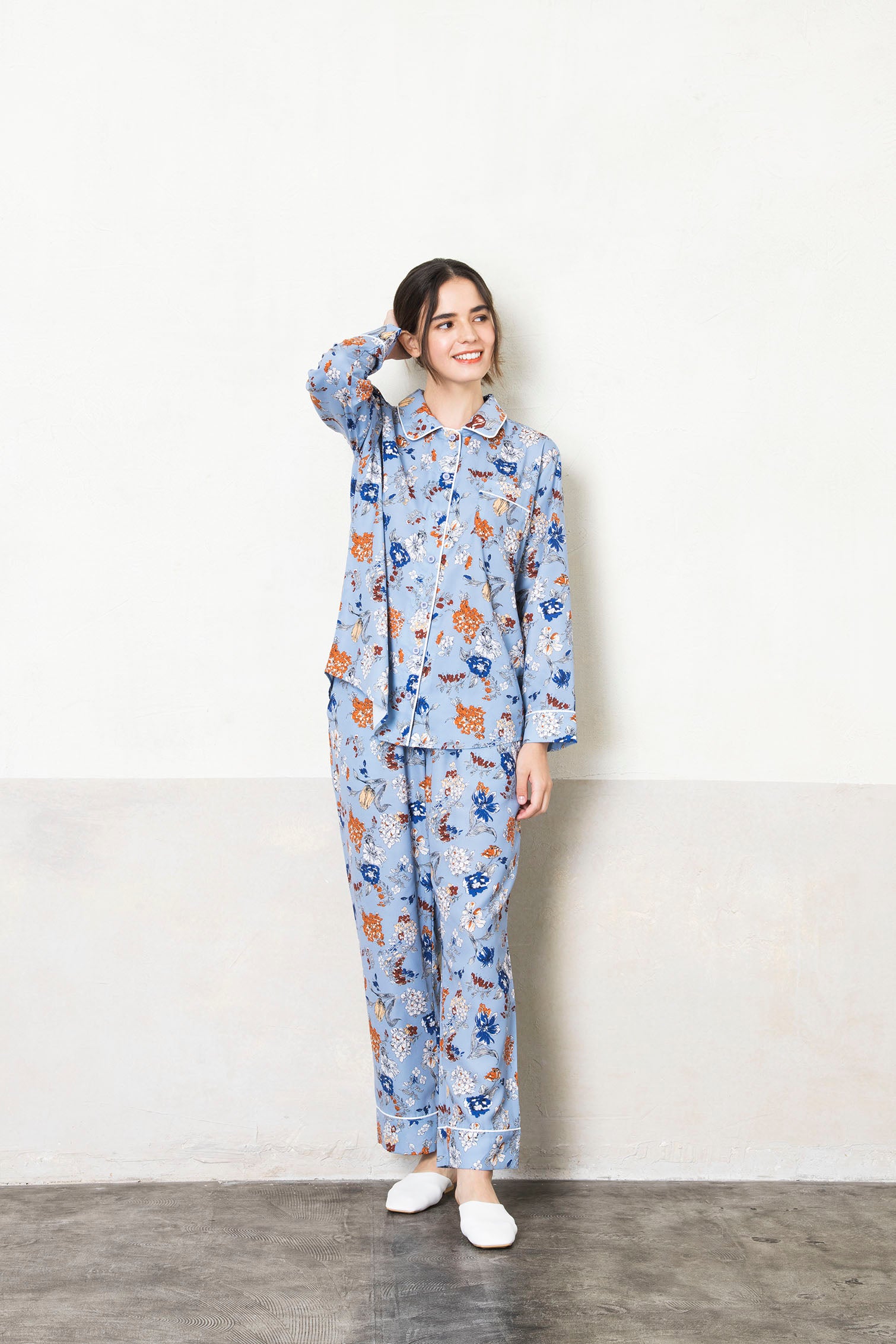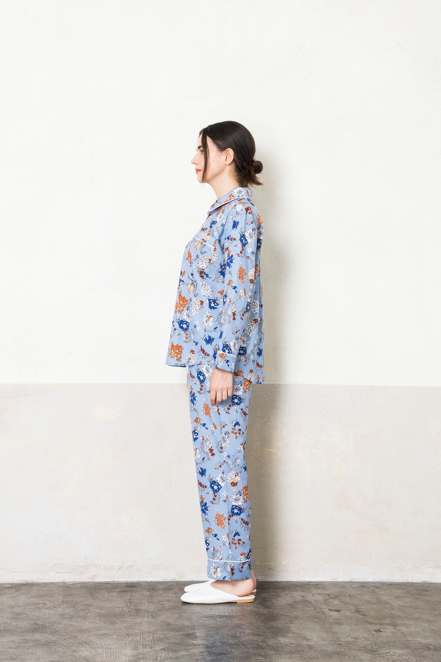 シルクタッチで上品かつ大人のパジャマに仕上がり、なめらかな肌触りを実現しています。