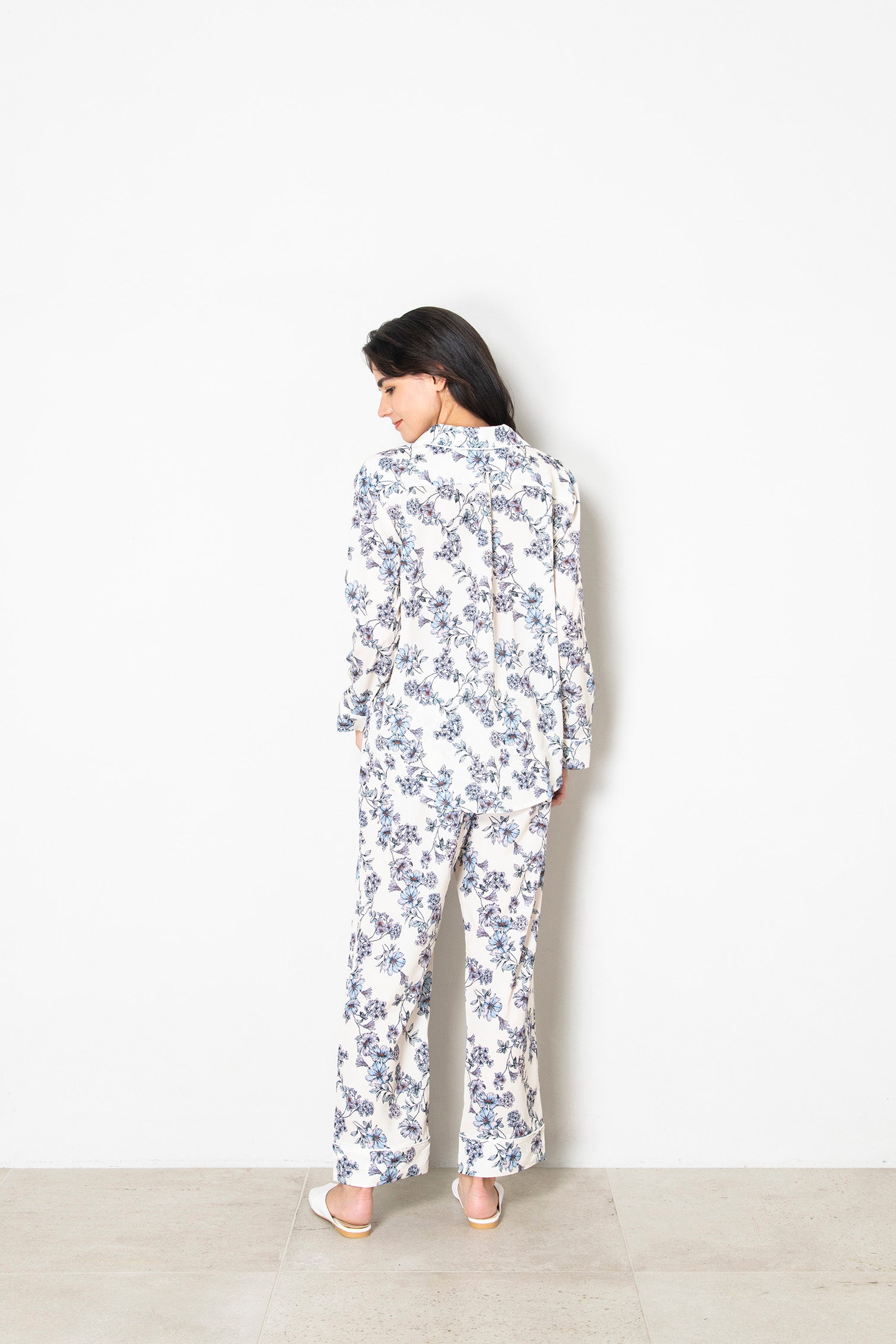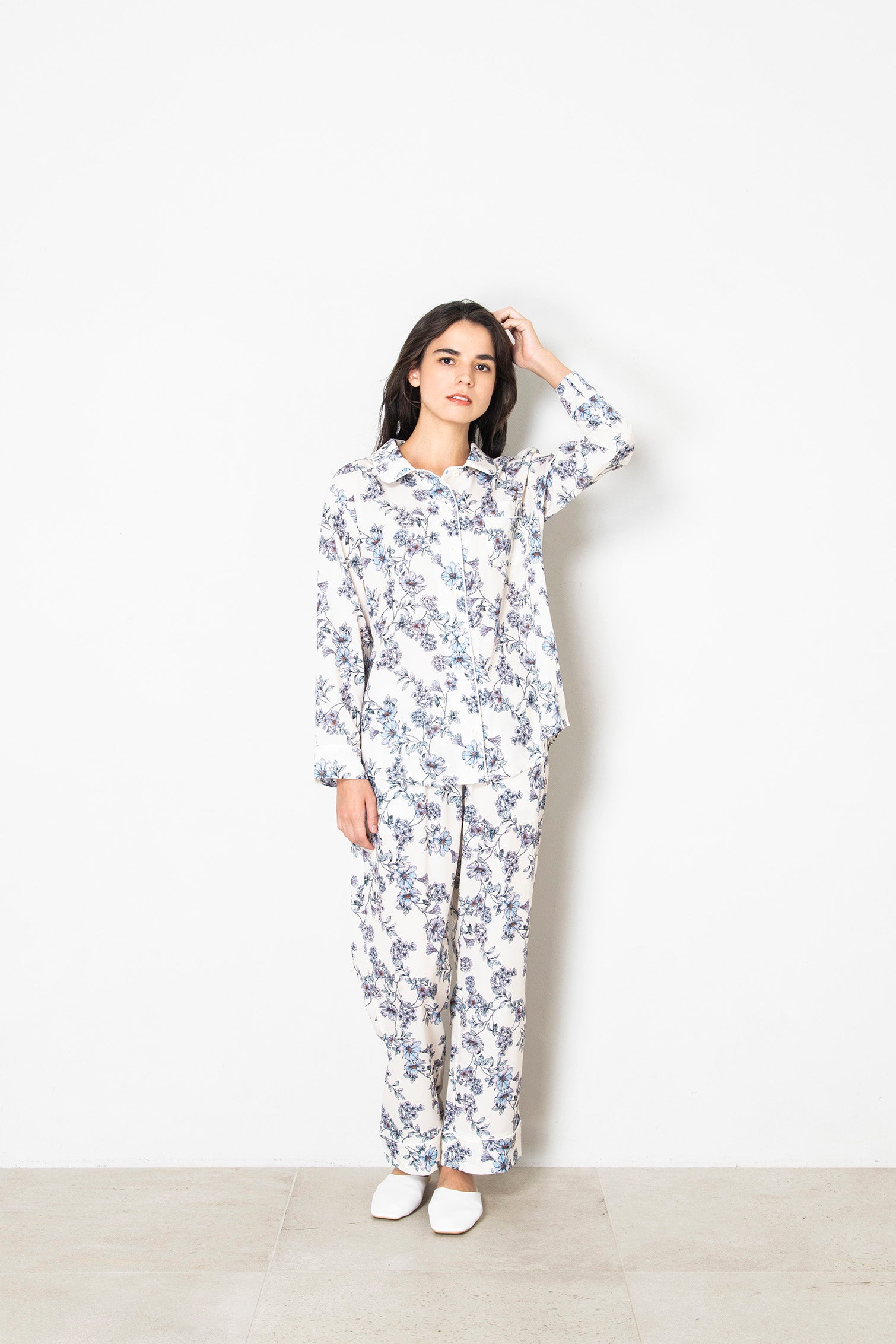 今季の新柄が登場。全体がホワイトベースになっていて、そこにブルーベースの花柄がプリントされていて、今までにないクールな印象となっています。花柄が苦手な方でも、楽しんでいただける、おとなしいデザインですので、ぜひこの機会にヒララのフラワープリントを手にとってみてください。