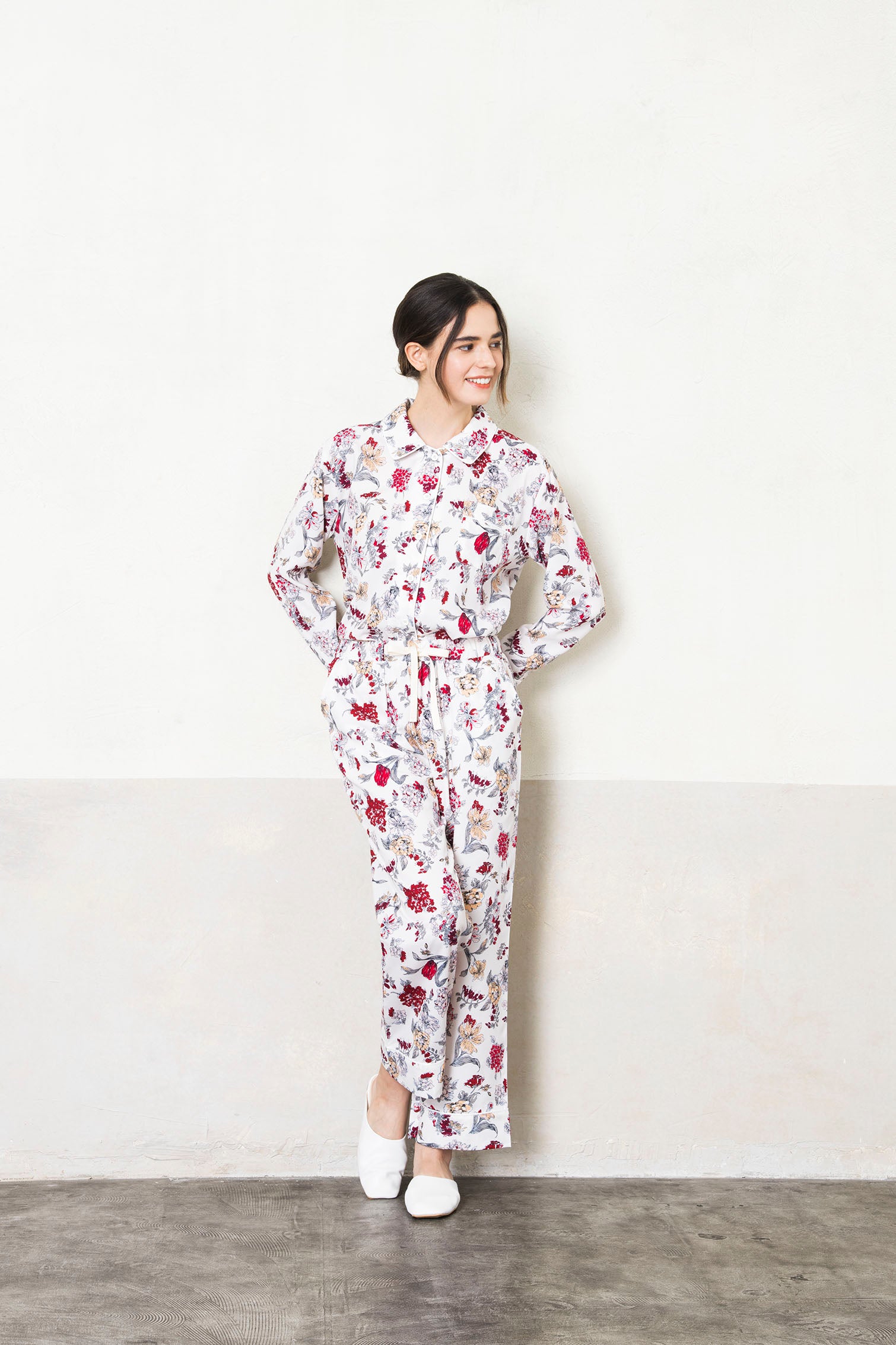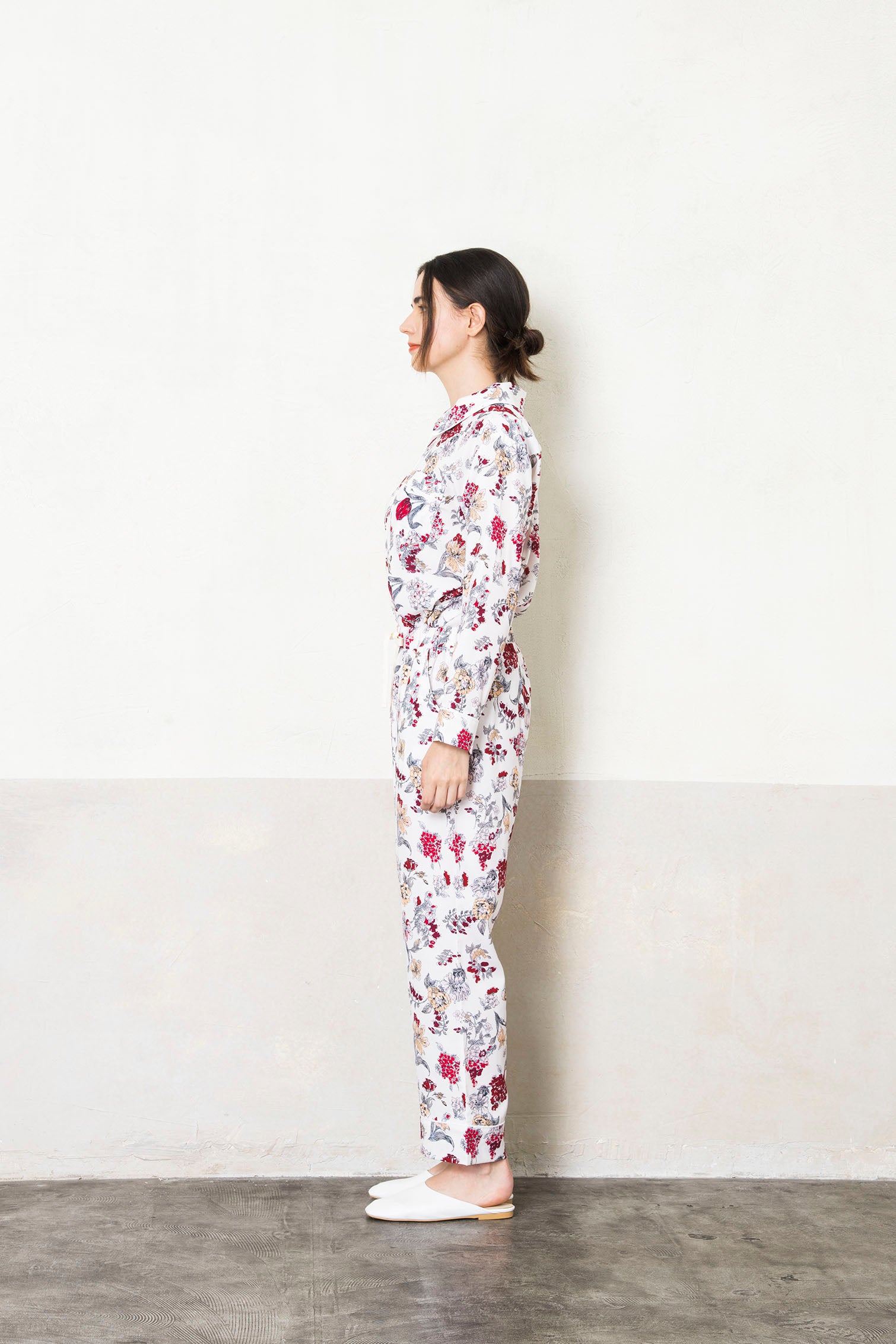 抜き襟にし、女性らしい抜け感のあるデザインなので、使い勝手は抜群です。上品なフラワープリントがトレンドを感じさせてくれます。