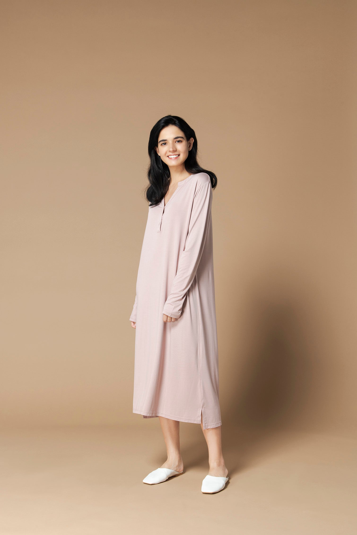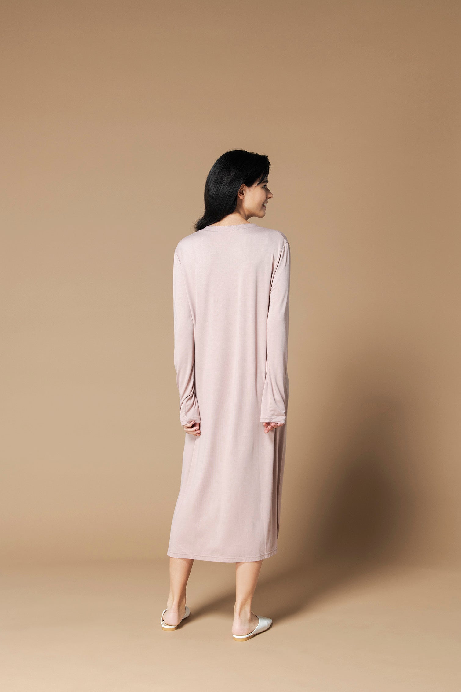 プレーンモダール素材のワンピースから、ヘンリーネックタイプが新登場。