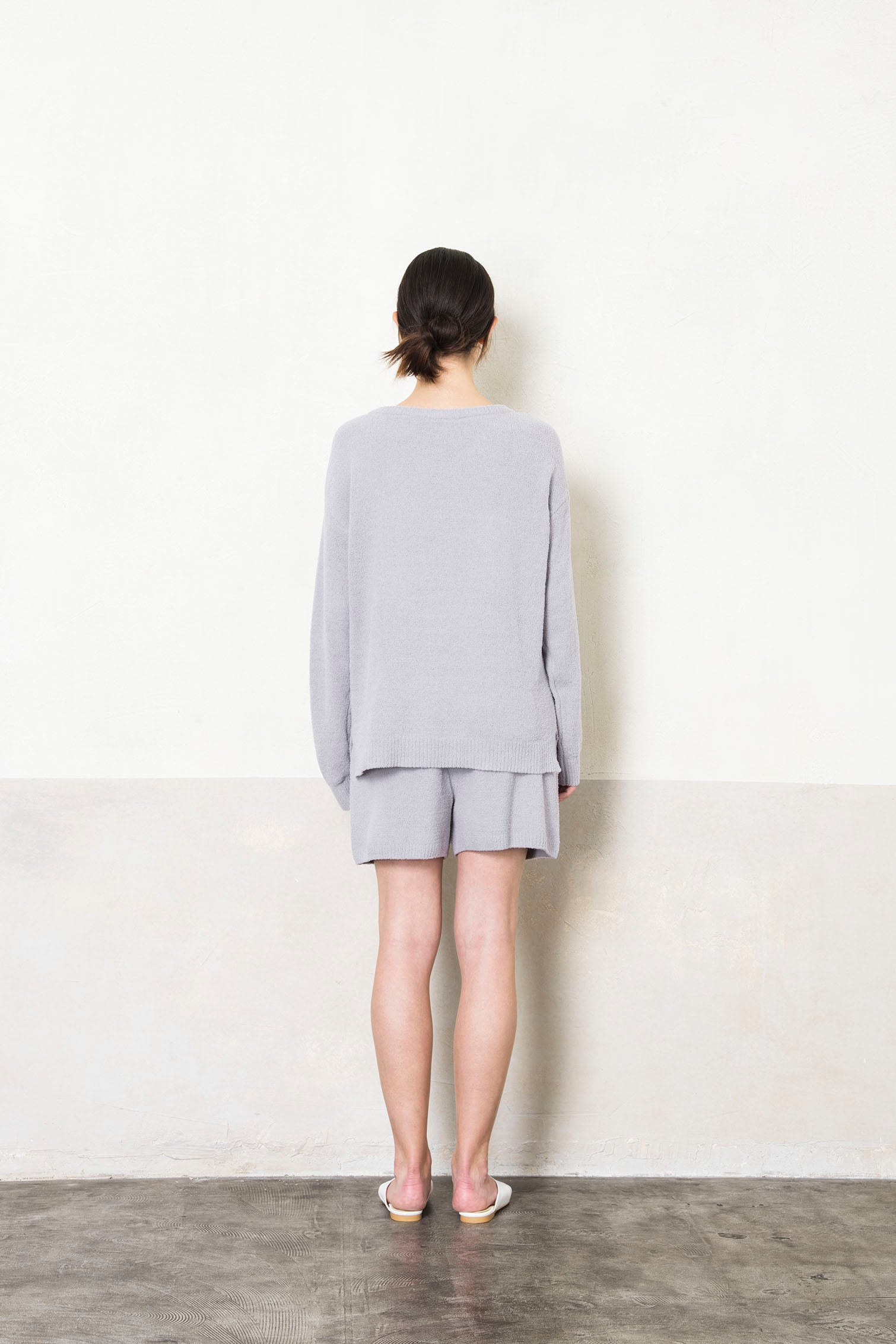 シンプルなVネックはデコルテをすっきりと綺麗に見せてくれ、どんなボトムスにも合わせやすいデザイン。ゆったりとしたアームホールもリラックススタイルには欠かせません。素材感を最大限に楽しんで頂けるように飽きの来ない普遍的なデザインに仕上げました。