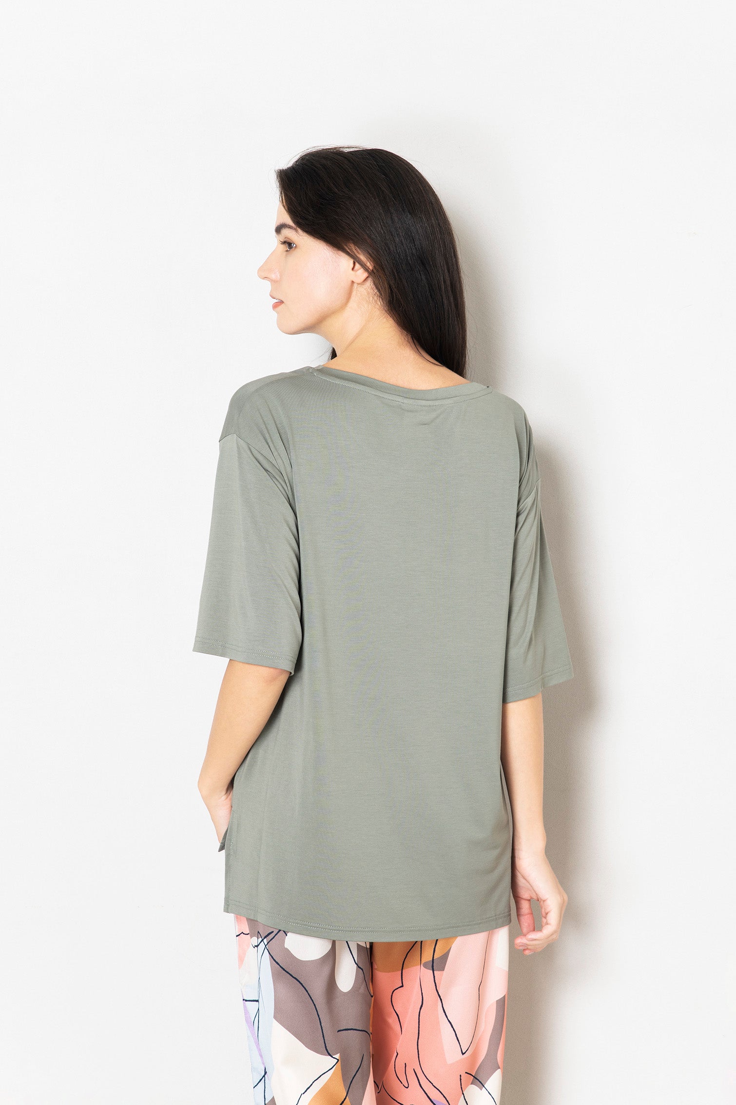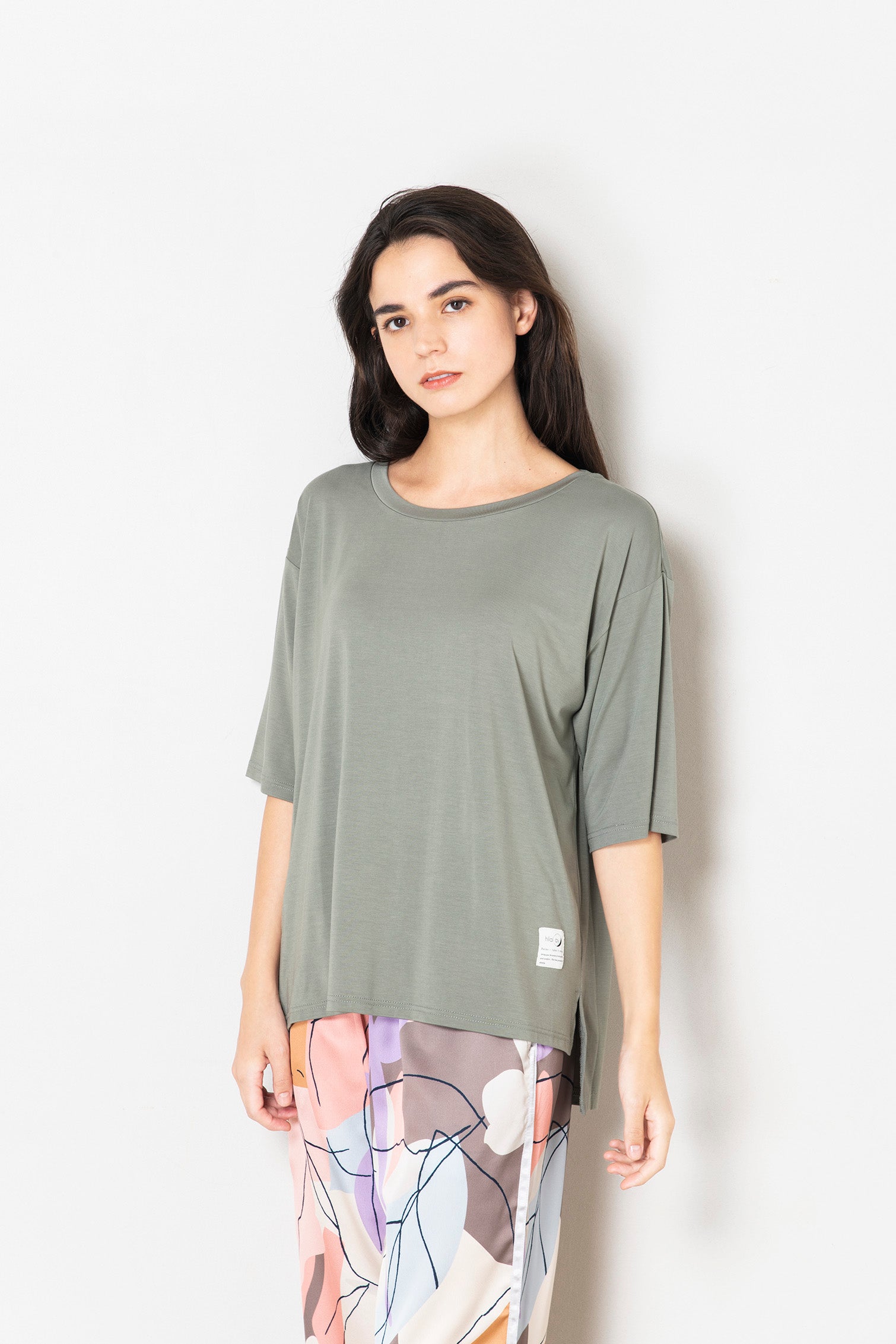 袖入れしたときのスルッと袖が通る着心地は病みつきになります。モダール素材のドレープ感があり、首の開きや、ゆったりとしたシルエットで作られています。洗濯での型崩れも無く、デイリーに使いたいトップスです。どんなシーンでも使いやすい、着心地の良いアイテムです。