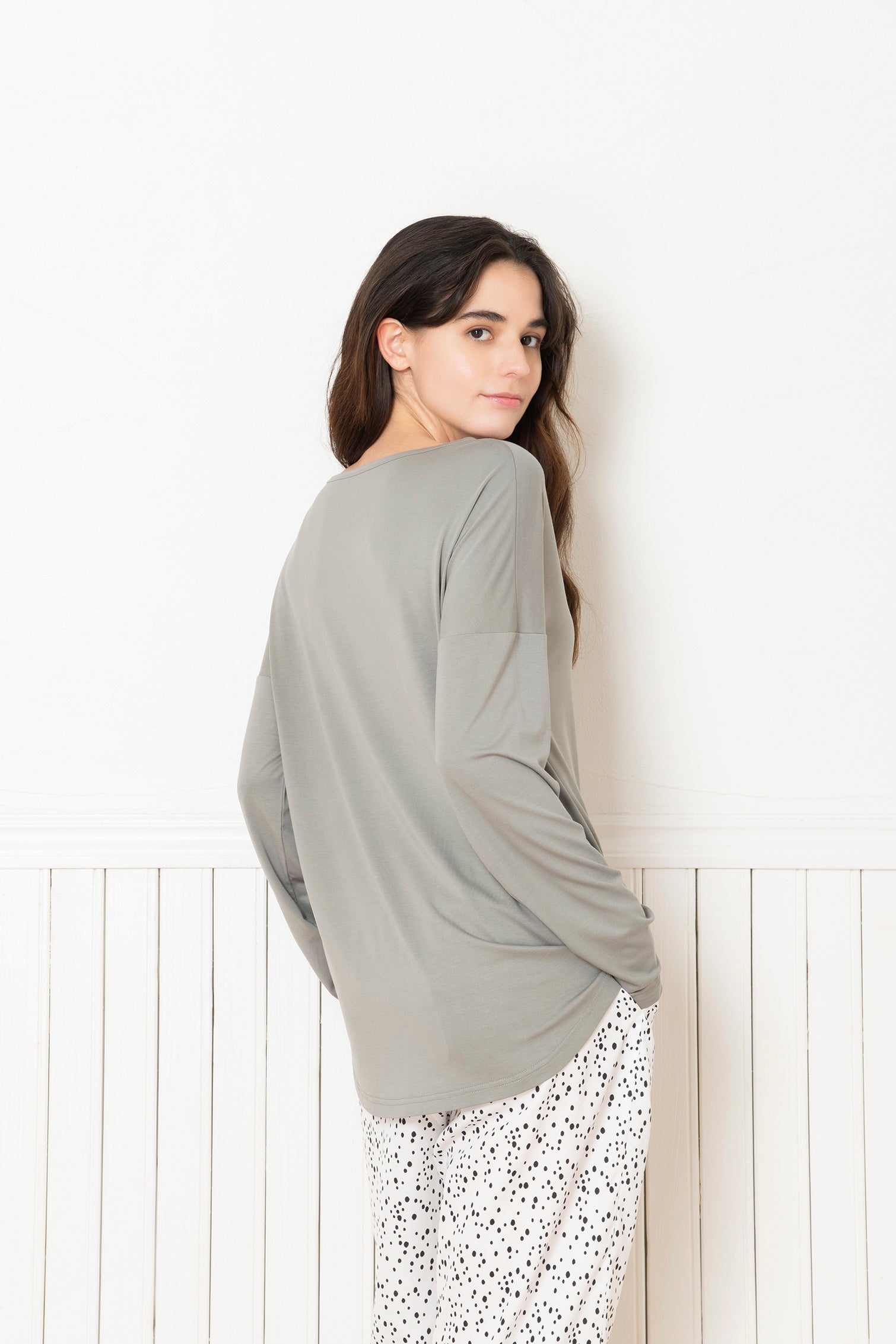 袖入れしたときのスルッと袖が通る着心地は病みつきになります。モダール素材のドレープ感があり、首の開きや、肩回りにストレスのないフィット感で作られています。洗濯での型崩れも無く、デイリーに使いたいトップスです。どんなシーンでも使いやすい、着心地の良いアイテムです。