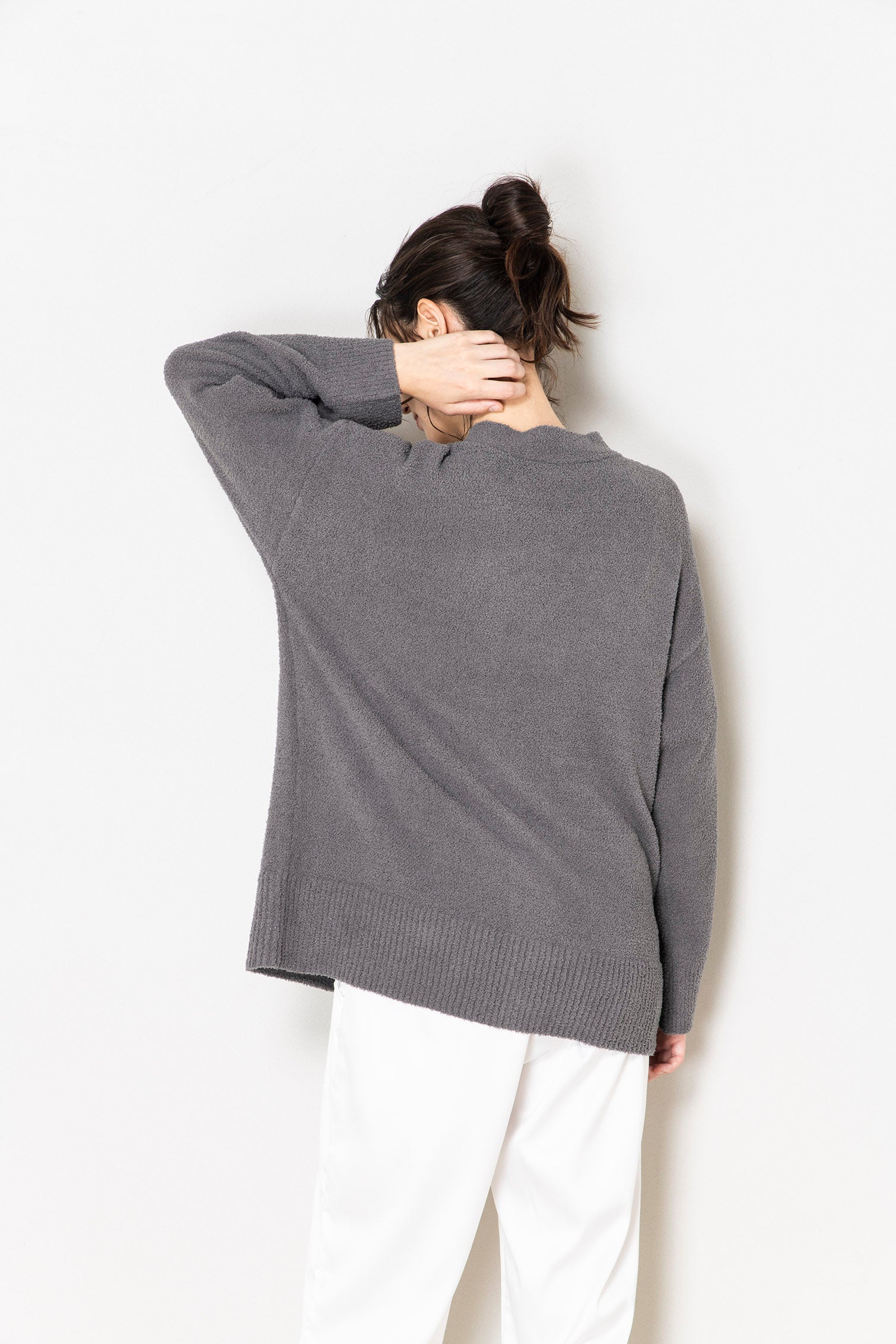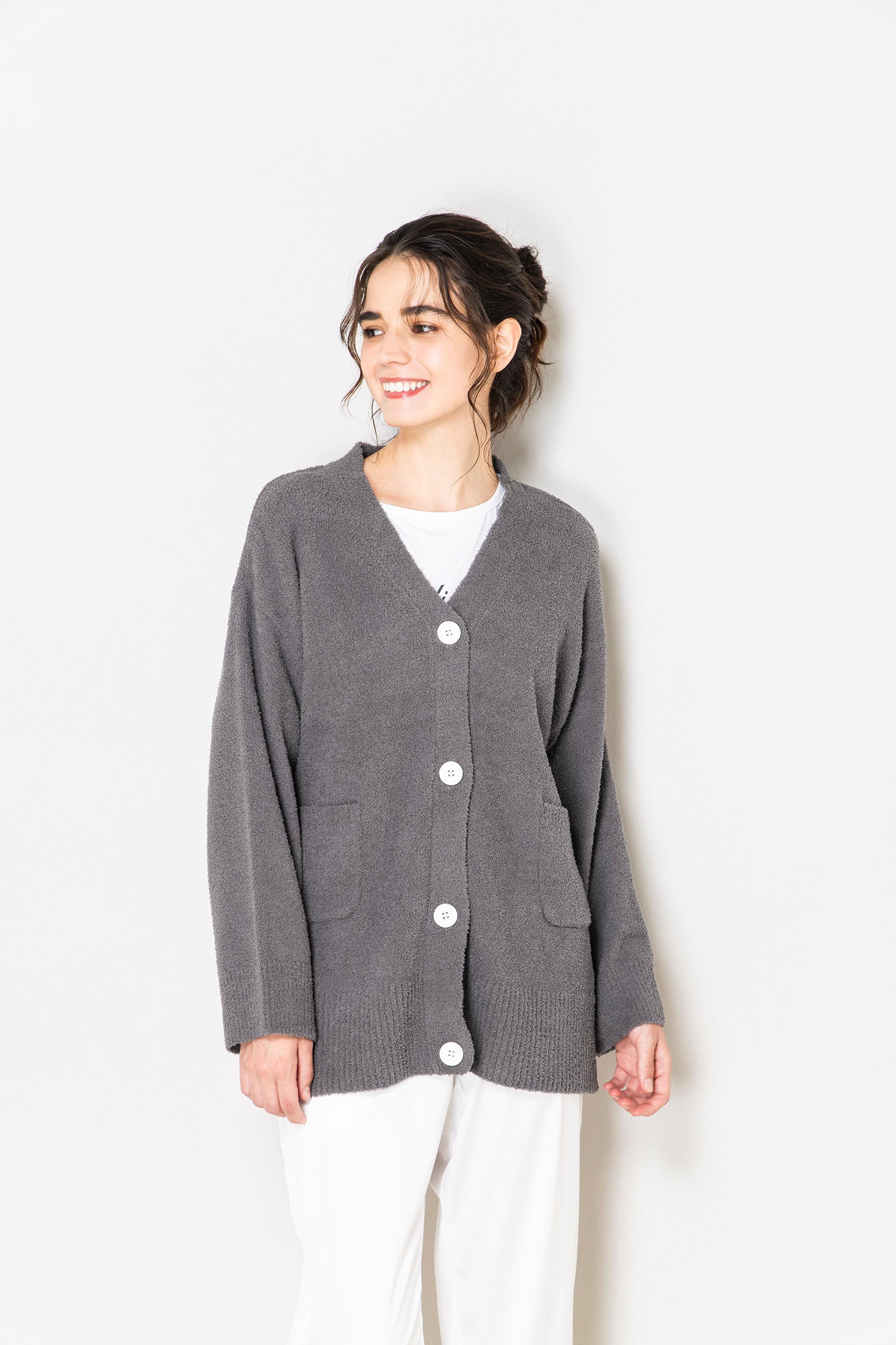 プルオーバーとしても着用できる絶妙なネックの空き具合で、一枚で2WAYの着こなしができる一枚です。ゆとりのあるシルエットはトレンド感を感じさせてくれつつ、体系もカバー。着る人を選ばずエイジレスにご着用いただける着丈のカーディガン。お家の中は勿論、ライトウェアとしてもご活用頂けます。