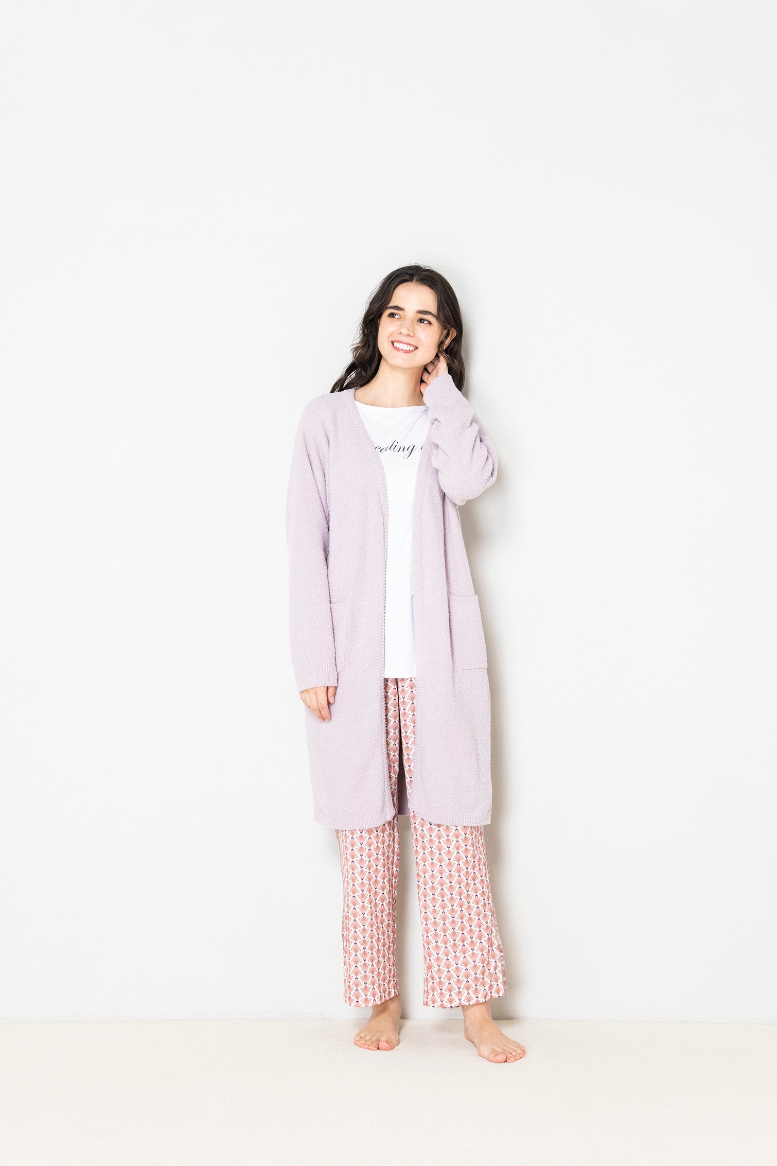 ・ファリナセアのプリントされたパジャマに羽織ることで、WHT×PINKを可愛くもあり大人っぽい着こなしに。