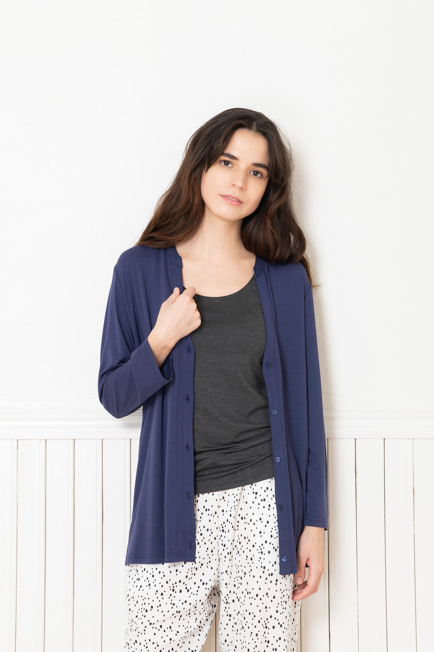 リピートする方続出のプレーンモダールのウェアから、カーディガンが新登場。