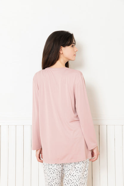 さらさらとした肌触りでストレスがなく、程よいドレープ感が上品なアイテム。同素材のTシャツと合わせて、肌触りを楽しんでください!