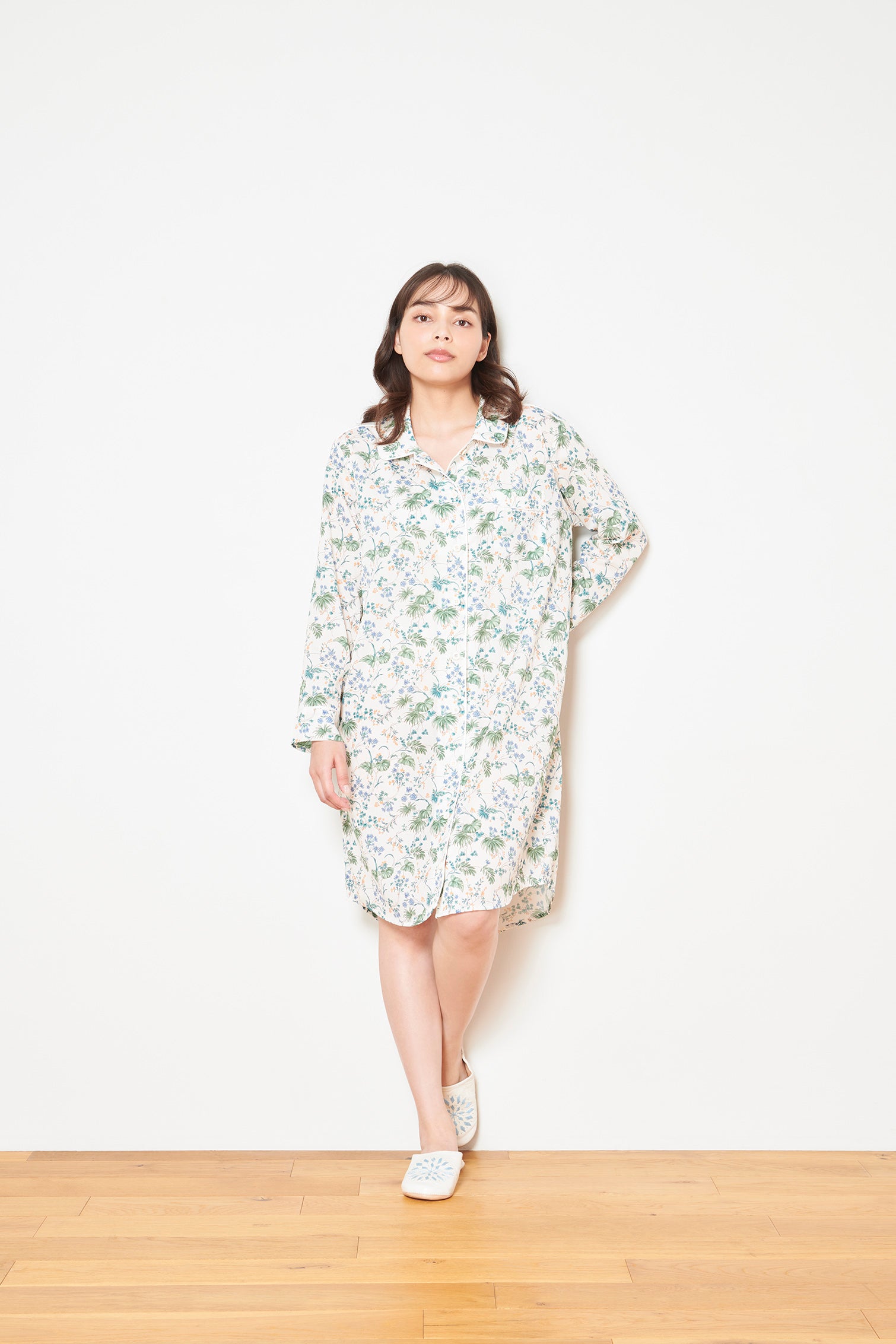 抜き襟にし、女性らしい抜け感のあるデザインなので、使い勝手は抜群です。上品なフラワープリントがトレンドを感じさせてくれます。新柄の花柄がかわいいおうち時間を演出します。