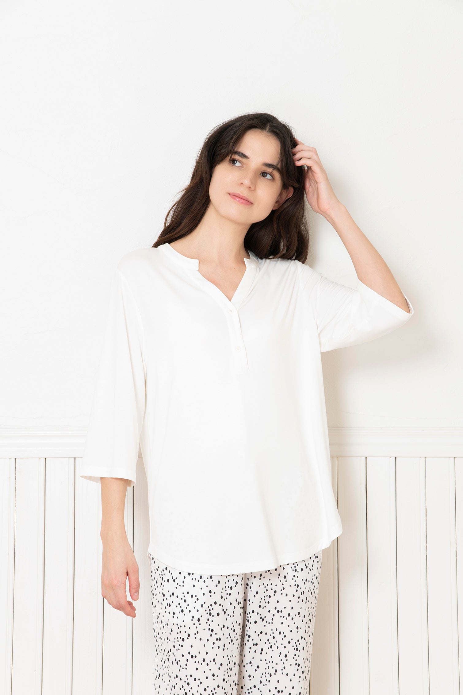 ソフトモダール ヘンリーネック半袖Tシャツ