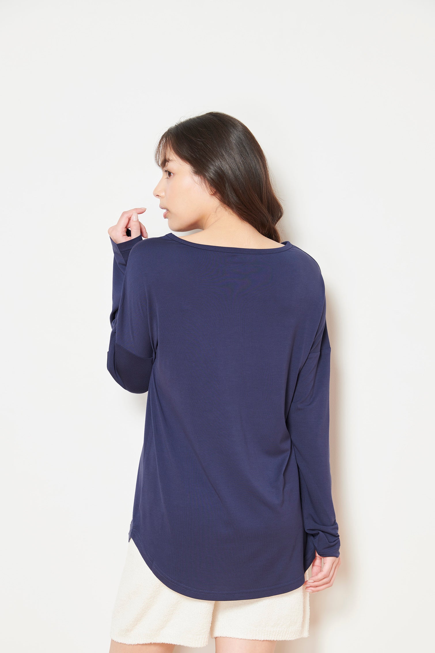 袖入れしたときのスルッと袖が通る着心地は病みつきになります。モダール素材のドレープ感があり、首の開きや、肩回りにストレスのないフィット感で作られています。洗濯での型崩れも無く、デイリーに使いたいトップスです。どんなシーンでも使いやすい、着心地の良いアイテムです。