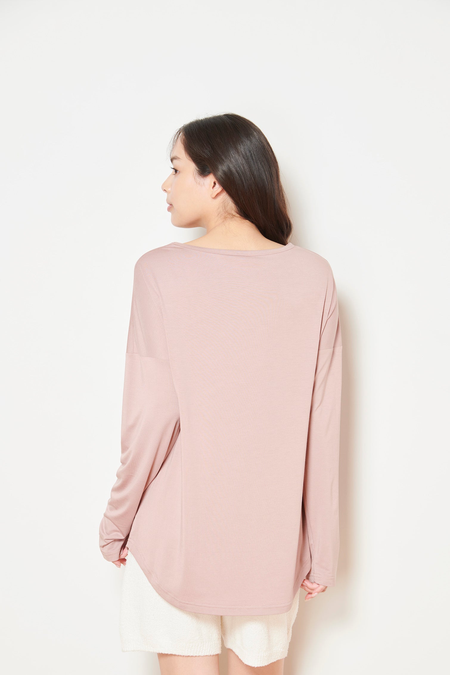 袖入れしたときのスルッと袖が通る着心地は病みつきになります。モダール素材のドレープ感があり、首の開きや、肩回りにストレスのないフィット感で作られています。洗濯での型崩れも無く、デイリーに使いたいトップスです。どんなシーンでも使いやすい、着心地の良いアイテムです。